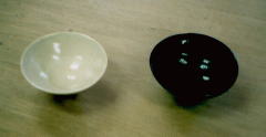 《ご案内》 織部釉を使っているんですが写りがまったくだめ。 右:貫入志野釉
