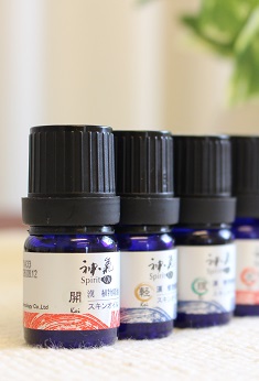 神気オイルは東洋医学の五行・陰陽学説に基づき開発された精油で、五行(木・火・土・金・水)の不調に対応したオイルでトリートメントいたします。